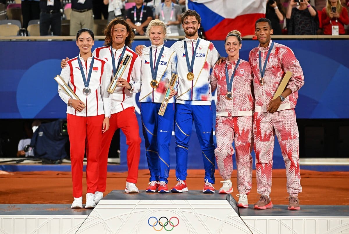 In the doubles, Jasmine Paolini and Sara Errani won the gold. In the mixed doubles, Katerina Siniakova showed she’s one of the greatest doubles players of all time, clinching the gold in mixed doubles with Tomas Machac (her ex or former ex: they still won’t tell 😁 ) after the gold she won with Barbora Krejcikova in Tokyo. This concluded a crazy sequence this summer after winning Roland-Garros and Wimbledon.